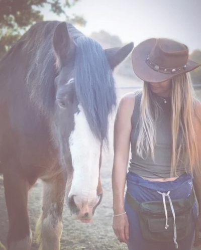 My name is Stephanie Seaholm. My journey with horses began when I was 2 years old. Love at first sight. I remember being drawn to these magnificent creatures at a young age. By age 6, I started my first riding lessons at Cloverleaf Ranch, in Santa Rosa, CA. I learned the basics of the Western discipline. About 6 months later, I begged my dad for English riding lessons. I moved to Oakridge Stables, also in Santa Rosa. I stayed there many years and rode with several instructors. Most of their school masters were 16hh-17hh. Gentle giants. I loved them all. I then rode my first gray Arab and decided that was my breed and one day I dreamed of having my own. Eventually, I privately leased a very special Tennessee Walker named Sam. He was abused in his past and would buck if anyone tried to mount up. I figured out how to mount by tying him to a pipe corral and climbing up and over and gently lowering myself onto his back. I’d release my quick release knot and off we’d go. He babysat me and always kept me safe. We had many adventures together in Annadel State Park. He is the horse who introduced me to trail riding. I’d pack snacks for both of us and off we’d go. I trusted him with my entire being and he trusted me, but he eventually went back to his person and I lost track of him. Of course, he had a huge influence on me. I think of him often. I’m forever grateful for our connection and for his teachings. What a beautiful soul. My next horse found me in Monterey, CA. He was a 5 year old Morgan/Arab (registered Morab), named Max. My dad and I drove to the barn where Max was boarded, in Carmel Valley. He was a beautiful bay gelding. I rode him and fell off due to my inexperience with jumping. Rider error. He turned right around, put his nose down to check on me and that was it. My dad bought him for me. I had Max for 6 years. He was not only my partner, but my best friend and my therapist. He helped me navigate life through my rough and awkward teenage years. All of a sudden I was 18 and expected to go off to college and our relationship came to an end. Something so painful, I still cry, miss him, and think of him often. I just pray he had loving humans the rest of his life. I then moved to Lake Tahoe for the winter of 1997, but ended up staying 5 years. I dreamt of horses and riding often and finally knew I needed horses in my life again. I found a summer job at Tahoe-Donner Equestrian Center. All of my years of training in English riding paid off. I became the English riding instructor at TDEC and ran their English horse camps for kids. I also became a trail guide/wrangler. I went back to my Western roots. I quickly learned how to tie a rope halter, tack up, neck rein, and manage a group of beginners out on trail. My nickname was “Hollywood”. My favorite guide horse was Crystal, a gray Arab mare that was so fun to ride. a couple years later, I moved to Santa Barbara for a year. I found a job as a guide/wrangler again, but this time I learned to drive a 10 horse stock trailer, pulled by a dually, and got to ride on the beach for 6 hours a day. We would trailer the horses, that we needed for the day, out to the trail head in Goleta. We would tack up, meet the guests, and start the 2 hour ride along a scenic bluff and through eucalyptus trees which would wind down to the sand. We ‘d often ride on the beach as dolphins fed and played just off shore. Heaven. I bonded with a guide horse no one else liked. His name was Coal. He was a black Quarter Horse. I loved him. So grateful for all the lessons I learned working for TDEC and Arriba Horse Adventures. I made my way back to Lake Tahoe, but settled in south shore this time. I got hired at Camp Richardson Corral. I worked 6 days a week and sat in the saddle up to 9 hours a day. I loved this job. We got to ride some beautiful mountain trails and experienced bears, thunder storms and more. This was by far the most demanding job I had. I loved this place and all the horses. The thing is all of the horses you work with, at any of these places, become your co-workers and your family. And, there are always the super special ones you just connect with and fall in love with. My love of draft horses began at CRC, thanks to the owner, Quint Ross and his buddy, Steve Weems. They had a jousting troup called Knights of Avalon. Steve also guided there. Quint had several drafts, but one in particular captured my heart. Big Maude. She was a huge Belgian mare. I swear she was 18hh. I rode her often and decided my next horse would be a draft. I moved to Los Angeles to follow my dream of becoming an actress. I studied at Stella Adler Acting Academy and found a job teaching riding lessons and running the camps and other programs at the Los Angeles Equestrian Center. I worked for the Traditional Equitation School. I loved this place. It was on another level. I got certified under the British Horse Society and made several friends, one who is still my best friend, Lorna Duff, who now runs her own riding school, Starwood Riding Club. Lorna left TES and taught for Baycrest Farms. Eventually I followed and taught lessons and we started riding camps together. We took the camps to the next level. They were popular with the kids and we had so much fun. Baycrest Farms was eventually sold and we both moved on. Lorna began her own riding school and I took a break form horses and started a dog care business called Dogstar LA. In 2017 I got a job at a private rescue in Topanga called Mesa Ranch. The owner had several animals including a camel, alpacas, a donkey, birds of all types, and goats. She also boarded a small group of horses and had some rescues of her own. I eventually took over the management position and was introduced to the world of Equine Therapy. I soon found my mentor, Ariana Mazzuchi of Skyhorse Academy. I got my level 1 certification in Equine Guided Education. In 2018, Forest found me online. Forest is my heart horse. He is a 22 year old Clydesdale ge